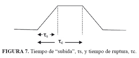 en donde τs representa el tiempo de "subida" y τc representa el tiempo de ruptura, dado por: