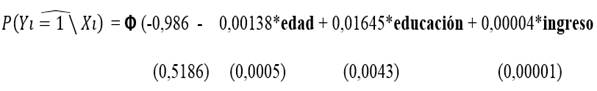 En el caso del modelo Probit tenemos: