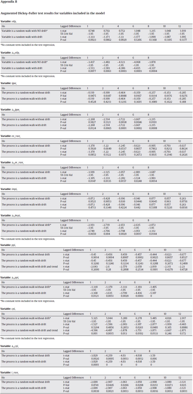 12The ADFT was performed for each variable in levels and first differences. In order to show robustness to the inclusion of lagged differences in the test, we report the results for different number of lagged differences in each case.