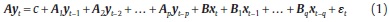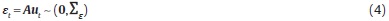 For a proper choice of A, εt has a diagonal covariance matrix Σε, and a vector moving average (MA-X) representation of the model in (1) will be based on the structural shocks εt and the exogenous variables and given by:15