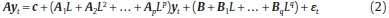 for ∑Φ i-jj=1 i=1, 2, 3,... and Aj (j = 1,2,..., p) are the matrices of dynamic effects in expression (1) and (2).