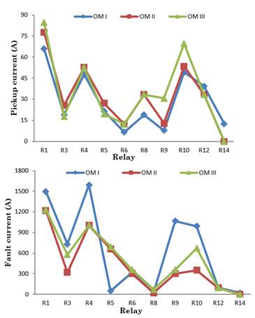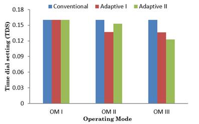In the case of operation mode, I, Table 2 shows that conventional and adaptive approach I present the same TDS and operation time since the I P and I F positive sequence is the same for both approaches, and it is used for coordination purposes. On the other hand, the adaptive approach II presents a difference in TDS and operation time because it used an adaptive fault current I F ad defined by (9).