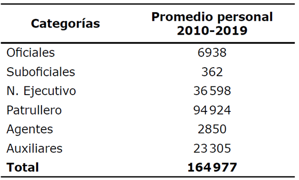 Al comparar dichas sanciones (40 669) con el promedio de personal entre el 2010 al 2019 que suma 164 977 (Tabla 3), puede calcularse que en ese lapso 1/4 o el 24.6% de los uniformados fueron sancionados.