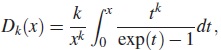 donde Dk(x) es la función Debye, la cual está definida para cualquier entero k por