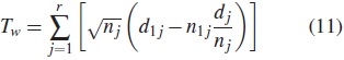 Esta prueba se basa en la suma ponderada de las diferencias observadas y esperadas entre los números de fallas usando como peso o ponderación a nj. El estadístico de prueba se construye usando
