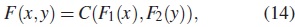 Definición 1. Sea X y Y variables aleatorias con función de distribución conjunta F, con distribuciones marginales F1 y F2 respectivamente. X y Y son dos variables uniformes si F1 y F2 son continuas. Entonces existe una cópula única, la cual es una función de distribución acumulada, con sus marginales uniformes tal que