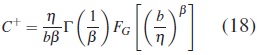 es la función de distribución acumulada de una variable aleatoria Gamma con parámetro de forma 1/β y escala igual a 1. Ahora como β, η y C+ son dados, entonces (18) se soluciona numéricamente para obtener b.