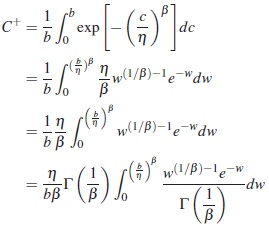 Realizando cambio de variable se tiene, sea w =(c/η)β entonces c = ηw1/β y (η/β)aw1/β−1dw =dc. Entonces,