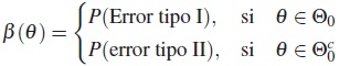 Entonces, si θ ∈ Θ0 y la prueba de hipótesis decide en favor de H1, es decir, se rechaza H0, en este caso se comete un error de tipo I (con probabilidad α), o si