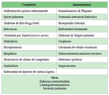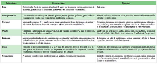 Tabla 1 Transparencia del parénquima pulmonar que simulan quistes. Modificado de la referencia 6 y 7.