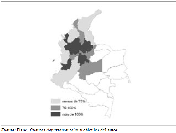 Resulta sumamente paradójico que en los años siguientes Boyacá se benefició de su posición privilegiada, en razón de su cercanía a Bogotá. Ello permitió una gran migración hacia esta ciudad y el aumento en la producción agrícola, debido al aumento en la demanda por esos productos como resultado del gran dinamismo de la economía bogotana. Por ello, entre 1950 y 2006 el crecimiento del PIB per cápita de Boyacá superó a la media nacional y, como resultado, convergió hacia el ingreso promedio del país (véase el cuadro 2). En contraste, Barranquilla ha tenido desde esa época una menor tasa de crecimiento que la nacional, lo cual llevó a un retroceso relativo del departamento del Atlántico, cuyo PIB per cápita en 1950 estaba por encima del promedio nacional y en 2006 era sólo el 84% de ese promedio, por debajo del 90% de Boyacá.