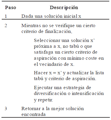Tabla 2. Búsqueda Tabú. Tomado de Robuste, (2005)
