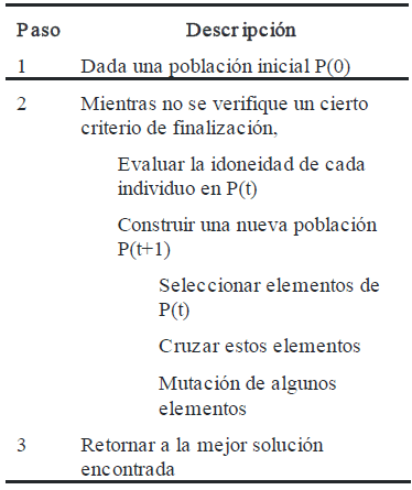 Tabla 3. Algoritmo genético. Tomado dze: Robuste, 2005
