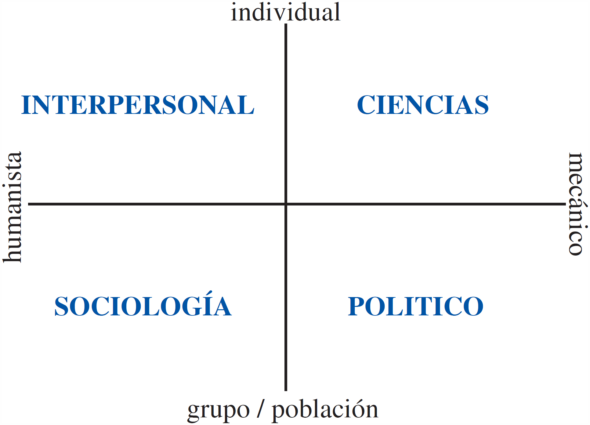 A partir del carácter simplificado del modelo, este es un paso fácil para ver el modelo como idealizado, una función de muchos modelos y marcos. La Figura 1 pude aun sugerir muchas preguntas. ¿Cómo debemos navegar los ejes? ¿Son equivalentes en amplitud de los continuos representados? ¿Cuál es la unidad de medida? Tomando el eje individuo-grupo primero, podemos apreciar donde se ubica la idealización del cuidado centrado en la persona. Esto no es sólo en virtud del etiquetar (individuo), pero está asociado con el conocimiento que invita a su alrededor. Los dos principales dominios de las relaciones interpersonales y las ciencias instancian las dos formas de cuidado de enfermería sobre las cuales se basa toda la enfermería y alrededor de la cual se mantiene un debate sobre la paridad de la estima4. Estos son el cuidado en salud mental (interpersonal) y el cuidado físico (las ciencias). Dentro de estos dominios, podemos conceptualizar las varias actividades que componen ser humano y realizar la enfermería. La comunicación es un concepto clave en el cual todos los profesionales del cuidado de la salud deben lograr y mantener competencia5. Además, el modelo en su conjunto también se puede considerar, según la necesidad, como de encontrarse dentro de un dominio espiritual.