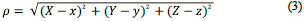 ρ is the geometrical range computed as a function of satellite (X, Y, Z) and station (x, y, z) coordinates, calculated by: