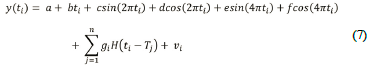 Heaviside function H (ti − Tj) = 0 if t i < Tj and H (ti − Tj) = 1 if ti ≥ Tj, and v i is the residuals.