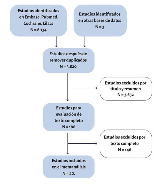 Material complementario 1. Flujograma PRISMA de estudios incluidos en el metaanálisis para eventos incluidos en el árbol de decisión.