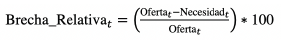 | Año | Población (*) | Oferta | Necesidad | Brecha absoluta | Brecha relative | Categoría de brecha |