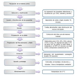 Figura 1 Diagrama de proceso metodológico para determinar los efectos de un recubrimiento comestible natural con base en sábila (Aloe vera) como estrategia de conservación de la guayaba (Psidium guajava L).