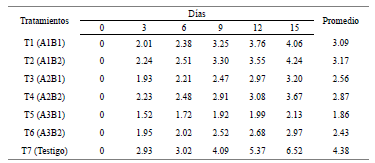 Se utilizó un diseño completamente al azar (DCA) con arreglo bifactorial (A*B), con tres repeticiones para completar 21 unidades experimentales. El análisis estadístico se realizó con el software Infostat. De igual manera, se realizaron comparaciones de medias de tukey al 5%.