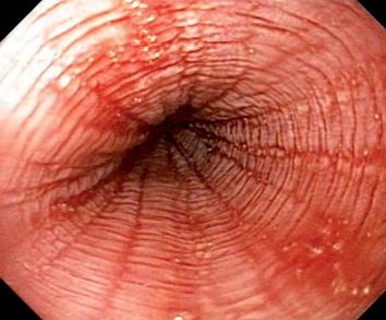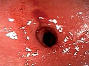 Figure 1. Esophagus with edema, erythema and friable membranes.