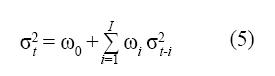 La cual define un modelo ARCH de parámetros wp, i=0:I. En este caso, et=h (I t-1) .εt.
