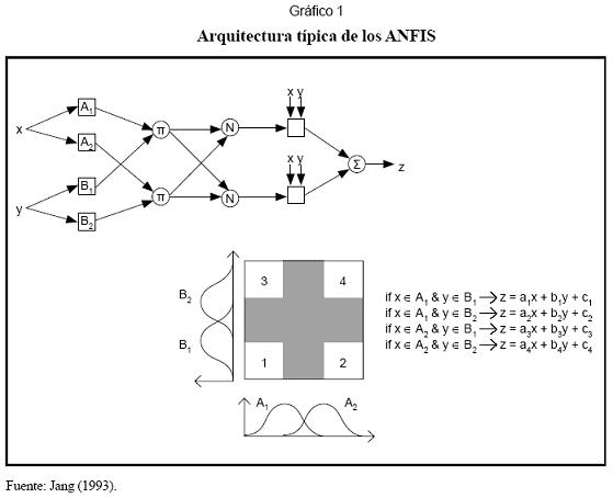 Más aún, se han desarrollado esfuerzos importantes por establecer marcos metodológicos para especificar modelos de redes neuronales basados en criterios estadísticos -véase, por ejemplo, a Anders y Korn (1999) y Fukumizu (2003)-. De esta forma, existe muy poca experiencia en el modelado y la predicción de series temporales usando sistemas de inferencia difusa, particular-mente para los ANFIS (Jang, 1993); sólo recientemente se ha planteado la relación de los ANFIS con otras técnicas econométricas (Velásquez et al., 2004), que abren la posibilidad de establecer un proceso sistemático de especificación fundamentado en pruebas estadísticas, para desarrollar así un marco de trabajo formal y riguroso.