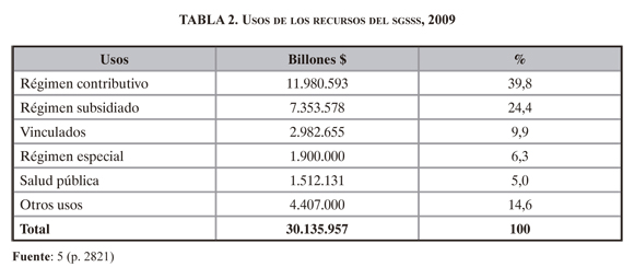 Estos ejes se concretan en objetivos, estrategias y metas, lo cual permite identificar resultados y aproximarse a la valoración de los impactos en salud (5, p. 2822). Pese a algunos adelantos, la SP sigue siendo el rubro que menor porcentaje de dinero recibe dentro de los diferentes usos en los que se destinan los recursos del SOSSS (véase tabla 2).
