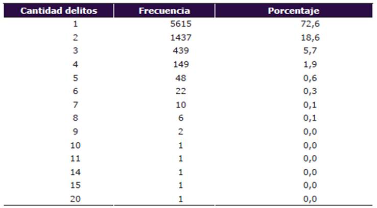Tabla 1 Reincidencias por tipo de delito (n=340.937 delitos)