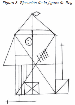 Comparemos esta ejecución con la evocación realizada un minuto después, en la cual la paciente recuerda que lo último que dibujó fueron "unas rayas diagonales dentro de una caja" y procedió a ejecutar el dibujo mostrado en la Figura 4. Cinco minutos después la paciente aseguraba: "Yo no he hecho esos dibujitos nunca en mi vida".