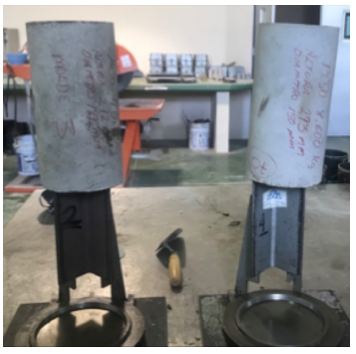 Once the cylinders were generated, they were allowed to dry in pairs. For the first pair, the process took seven days; for the second, 14 days; and the last one was left to dry for 28 days. The tests performed on the samples are described later in this document.