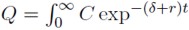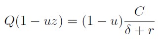 Donde c = C / Q. Esto equivale a que el valor presente de las utilidades brutas, expresadas como fracción del capital invertido, debe cubrir la tasa de depreciación del activo y el costo de oportunidad.