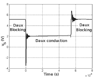 Where vref is the reference voltage to correct the synchronous error and VDaux is the diode conduction, which has been previously characterized, see Figure 11.