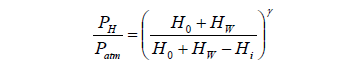 As the gauge pressure in the high pressure accumulator tank, HPT, is PH* (PH, absolute pressure), let us determine how much the water level inside the chamber had to rise, so that the air pressure would reach this value. Assuming an adiabatic compression it follows that