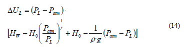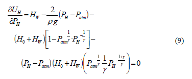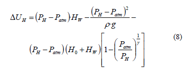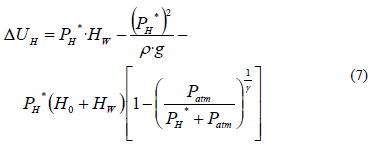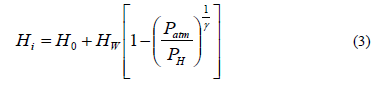 Note that for each case analyzed, the particular value of H0 and HW, the values for the pressure in the storage tanks, deduced from eq. (9) and eq. (15), are not symmetrical with respect to the atmospheric pressure Patm.