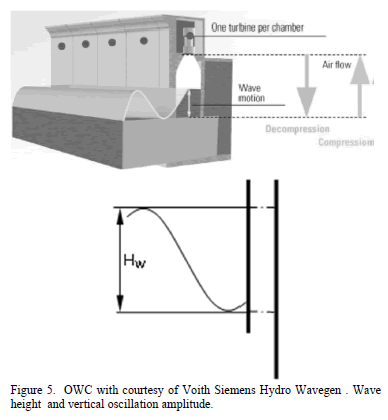 - A small wave height, insufficient to be useful for a conventional OWC, would be capable of generating electricity in an OWC-DPST.