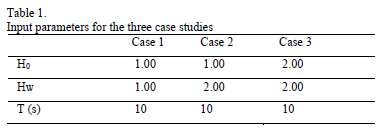 Assuming the above considerations, three cases depicted in Table 1 will be analyzed, under moderate wave amplitudes.