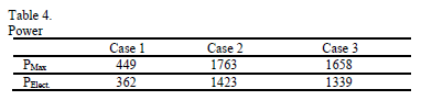 Multiplying first row of table 4 by the efficiency of the group yields the second row of the table, which is the electrical power expressed in W/m2.