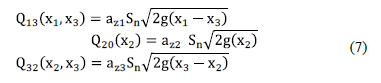 The flows Q13, Q32 and Q20 can be expressed as follows: