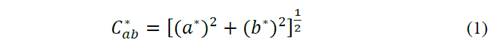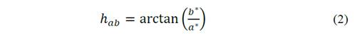 Color was determined by CIELAB coordinates [31], using a sphere X-RITE SP60 spectrophotometer, measuring the parameters (L *), (a*) and (b*) for each fruit at three points of the equator line, and expressed as the arithmetic average. Finally, the angular pitch (hab) was calculated as a qualitative attribute of color; and chroma (Cab*) as a quantitative attribute of colorfulness, following Eq. 1 and Eq. 2 [23].