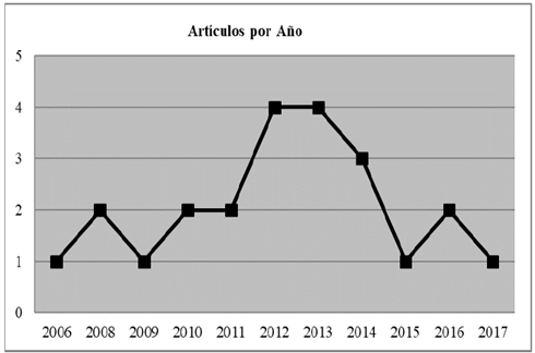 Considerando los años de publicación de los estudios seleccionados, se encontró que en el 2012 y 2013 se presentó un mayor número de publicaciones (ver Fig. 2), lo que se relaciona con las publicaciones de ITIL v3.0 (2011), ISO/IEC 20000 (2011) y CMMI SVC (2010).