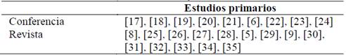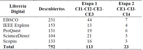 De los resultados de las búsquedas se obtuvo un total de 752 estudios. Luego de pasar por las dos primeras etapas del protocolo de la revisión obtuvimos un total de 23 estudios primarios, tal como se muestra en la Tabla 3.