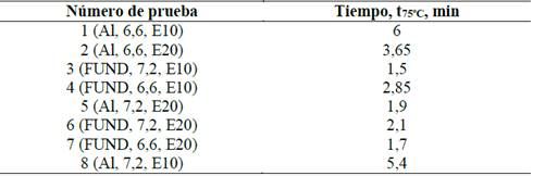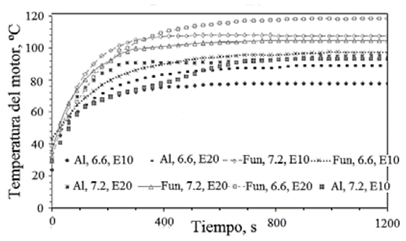 Las curvas de variación de la temperatura del motor durante el periodo de calentamiento operando en vacío, después del arranque del motor, son presentadas en la Fig. 17. En la Tabla 9, se muestra el periodo de calentamiento del motor, definido aquí como el tiempo requerido para alcanzar una temperatura de 75ºC.