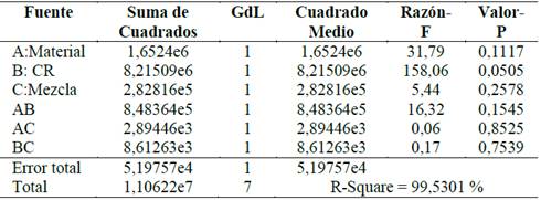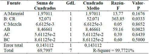 En la Tabla 5 se resume el análisis de varianza para la velocidad del motor. Las gráficas de Pareto de la Fig. 5, resumen y muestran la importancia relativa de cada factor sobre la velocidad.