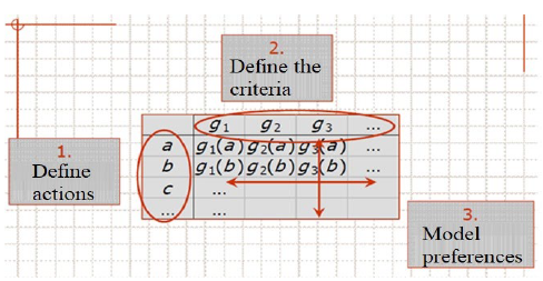 Model the preferences: That is, how two actions are compared, the possible results can be of type (preference, indifference, incomparable).