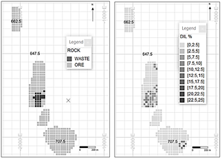In addition to misclassification of blocks, another type of dilution − operational dilution − should be considered in mine planning, especially over a short-term horizon. An approach to determine operational dilution as the incorporation of waste material into the ore due to the operational inefficiency of separating materials during mining, considering the physical processes and operational and/or geometric configurations of mining with the available equipment was presented in [15].