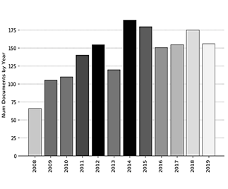 Figure 2 Average times cited by year. Darkness is proportional to the value of the bar