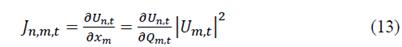 The elements of the matrix J t of size (NxM) are derivatives of the voltage at load state t in node n respect the susceptance of the capacitor installed in node m.