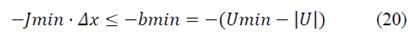In general, if U represents the vector of voltages in every nodes and load states, the minimum and maximum voltage constraints can be expressed as: