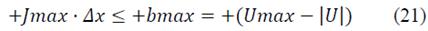 The voltage constraints assure that module of voltage U in every node and load state (n,t) will fulfill the desired lower and upper bounds Umin and Umax.